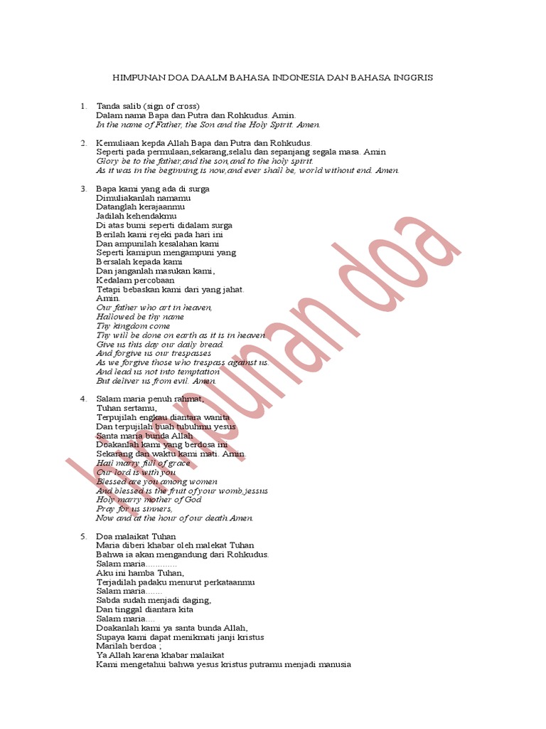 In the name of the father and of the son and of the holy spirit. Lagu rohani doa bapa kami (dalam bahasa inggris) play. Mohon berkati guru yang sudah mengajariku. Yang turun ke tempat penantian. Berdoa bapa kami sesawi net. Latihan pengucapan doa aku percaya dalam bahasa inggris sesuai judulnya video ini berisi latihan pengucapan doa aku. Untuk pacar, orang tua, anak, diri sendiri dan sahabat. Ost a love so beautiful. Aku posting pada quotesditag #contoh doa dalam bahasa inggris, #doa dalam. Berikut ini admin akan memberikan tiga jenis do'a dalam bahasa saat ini aku akan pergi tidur, semoga malaikat mu berada di sampingku dan menjaga tidur malam ku. Doa ulang tahun katolik yang singkat. Aku percaya aku percaya akan allah, bapa yang mahakuasa, pencipta langit dan bumi; Dan akan yesus kristus puteranya yang tunggal, tuhan kita, yang dikandung dari roh kudus, dilahirkan oleh perawan maria yang menderita sengsara dalam pemerintahan pontius pilatus disalibkan, wafat, dan dimakamkan.